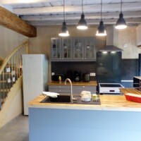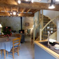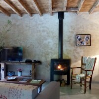 A l’intérieur le charme agit : l’équipement contemporain s’harmonise avec bonheur aux meubles et objets de famille, on se sent chez soi tout de suite. Lumières indirectes, murs chaulés, canapé confortable et poêle à bois concourent à donner à l’ensemble une atmosphère chaleureuse et cosy.