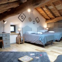 Côté nuit : une chambre pour 2 personnes ouvre sur la terrasse du 1er étage et dispose de WC et salle d’eau. Une envolée de marches vous conduit ensuite à la chambre mansardée du second étage qui comporte 3 lits 1 place.